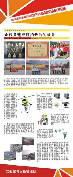 项目名称:全视角遥控航拍云台的设计 项目负责人:林瀚 指导教师:王华权 立项年度:2007年度 |