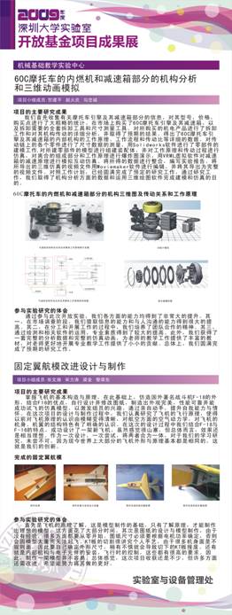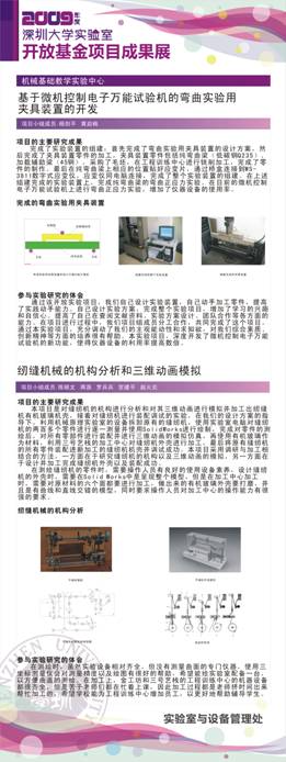 项目名称:基于微机控制电子万能试验机的弯曲实验用夹具装置的开发 项目负责人:杨剑平 指导教师:黄桂坚 立项年度:2008年度 项目名称:纫缝机械的机构分析和三维动画模拟 项目负责人:陈顾文 指导教师:王红志 立项年度:2009年度 |