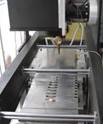 振镜扫描方法可以获得很高的成形速度。该自制实验平台于2009年研制完成、并且投入使用,主要用于模具工程专题项目实践过程中微型铸造砂型的制作,根据这一砂型进行铸造可以获得含近随形介质通道的注塑模具模芯的毛坯,最后再进行精加工得到最后的关键模芯零件。注塑成型时,向近随形介质通道中打入高压蒸汽对模腔型面进行均匀加热以增加塑胶材料的流动性、待塑件填充完毕后又打入冷却水使塑件极速冷却,由此可以成型无熔接线的高质量塑件。