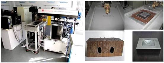 具体制作时,首先使用3D CAD软件设计制件的数据模型,然后使用深圳大学SZU-RP-CAD软件系统生成切片数据文件,最后使用本实验平台根据切片数据规划的扫描路径进行逐层选择性激光烧结扫描,最终逐层堆积获得与设计一致的砂型实物。