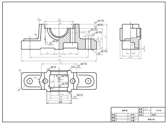 2、零件图。除进一步强化零件三维建模工作能力之外,学习重点放在工程图的表达,图幅规格、尺寸以及公差标注、形位公差标注、表 面粗糙度标注和技术要求等。