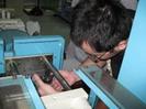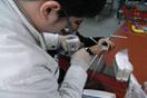 学生将制作完成的微型注塑模具安装于8吨微型注塑机上进行注塑成型