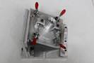 普通注塑模具加工难度大、成本高、工作周期长,成本通常在数万元以上。而《塑料成型工艺与模具》课程为60总学时,如果每组2名同 学均制作一套普通模具其工作量和成本是难以应付的,技术水平也难以达到。为适应实践教学,教研组专门配置了一台8吨直压式微型注塑机,可以成型3g的小型塑件。本中心研制了一种可快速更快模芯 的通用注塑模架,获得国家发明专利授权(ZL200710077046.3),该发明专利已转让青岛海尔模具有限公司独占使用,实现产业化,其特征之一是在顶针固定板上开设有蜂巢式的数排密集细圆孔,可根据 不同的塑件产品方便调整顶针数量和位置,因此,对于规格尺寸相近的塑件更换定、动模模芯、可能的胶位镶件、顶针和浇口套等相关零件后可以共享注塑模架。