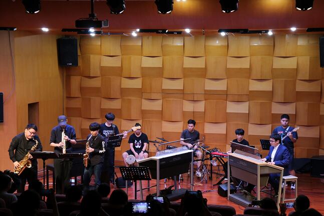此次音乐会共有九个节目,可以欣赏到古典、流行、爵士、中国风等多种音乐风格,并以键盘独奏、合奏或乐队合作的表演形式一一呈现给观众。另外,本次音乐会现场还邀请到了星海音乐学院现代音乐学院副院长谢及、深圳艺术学校双排键主教教师马莹莹及我院院长杨士春、双排键教师王葆栋老师,他们在音乐会结束后,都给出了指导意见和献上对学院的祝贺,现场气氛非常愉悦。