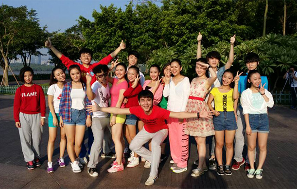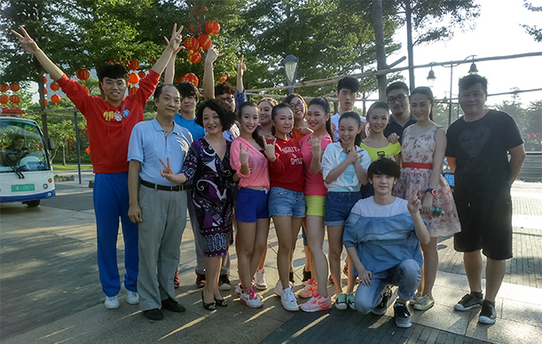 金钟2013届全体师生在25号接到活动邀请通知,26号便开始着手排练。每天我们都会聚在一起为了这次的活动而排练、熬夜。对于学生的我们来说,这样一次又一次的排练加上熬夜已经是苦不堪言了,可是老师们比我们更辛苦,他们不仅仅是活动的执行者,而且是策划者。特别是我们的舞蹈老师——王哲老师,他身上压力重重,这次全部动作的编排到当天的完美呈现,这些都离不开他的带领。在排练过程中他很严格,但是严格之余他也总是会想法子逗我们开心,让大家又重新有了动力向前走,真的很感谢王哲老师。终于在29号凌晨的4点左右,金钟学员们陆续到达学校集合地点。当时满天星斗,空气中还略带着一丝凉意,周围环境一片静谧,整个深圳大学都还在睡眠当中,可这个时候,学员们已经拖着疲惫的身体,睡眼惺忪的准时来到拍摄地点深圳湾。杨士春院长跟其夫人苏雪梅老师,还有赵久峰老师也都跟着大家一起准时来到拍摄地点,金钟又一次全家总动员出任务了!因为院长还有老师们这般的鼓励与支持,当天的拍摄进行得如火如荼,十分顺利。