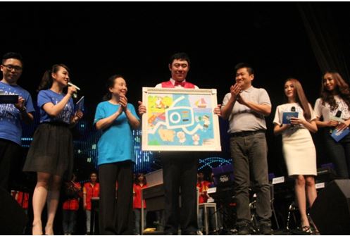 星星音乐会临近尾声时,爱特乐团与义工们合唱《感恩的心》回荡在整个剧场,此时自闭症患者贝贝(化名)将自己创作的一幅画送给一直关注并给予爱特乐团大力支持的爱心人士们,全场回荡着热烈的掌声。