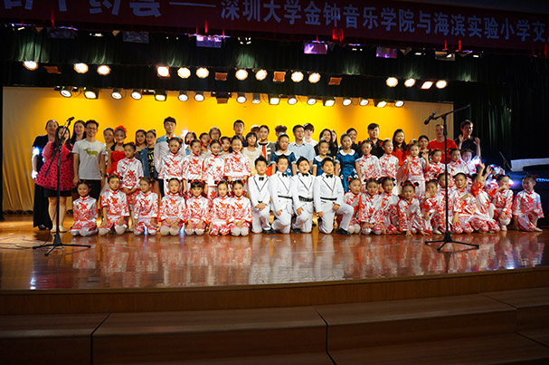 4月29日下午,我院学生筹备了一个多月的社会实践活动——“我和童年有个约会”主题文艺晚会在南山区海滨实验小学顺利举行。从小学到大学,是每个学生的必经之路,小学生对大学生充满憧憬和向往,大学生对童年也应有无尽的怀念。晚会上,金钟的大同学们和海滨实验小学的小同学们共同展示了不少精彩纷呈的节目。