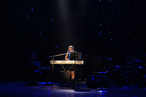 这次我是弹唱《至少还有你》,演出前两周我拿到改了的谱子,虽然一直都在练习,却总是担心出错,几次过节目我都没有很好的展现出来,但是老师和同学们一直都在鼓励我,给我信心,也给了我很多帮助。欣慰的是,正式演出时,我做到了。之前在学校的舞台上也弹唱过,但是总是有问题出现,这次老师们给了我们最专业的设备,创造了最好的条件,让我们在台上真的是放开了,在享受舞台享受音乐。真的谢谢所有付出的老师们。