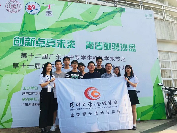 由共青团广东省委、广东省教育厅、广东省科学技术厅、广东省科学技术协会、广东省学生联合会主办,广东外语外贸大学承办,新道科技股份有限公司协办的第十二届广东大中专学生科技节之第十一届“新道杯”企业经营模拟沙盘大赛在5月19-20号成功举办。来自全省95支院校代表队(其中本科组44组,高职组51组)共475名学生,近百名带队指导老师汇聚羊城广州大学城共赴决赛现场。深圳大学代表队带着“圳能量、圳成功、圳前行”的信念,积极参与本次广东省决赛。经过两天高强度的比赛和决战,我校代表队最终把得头筹,获得全省第一即广东省一等奖的好成绩,获得晋级全国决赛资格!