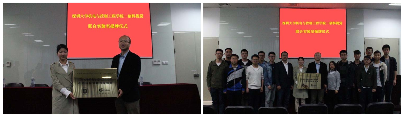 2018年3月12日,深圳大学机电与控制工程学院和深圳市创科自动化控制技术有限公司共建的视觉联合实验室揭牌仪式在机电大楼会议室举行,标志着联合实验室的正式成立。深圳大学曹广忠教授、彭业萍博士、崔玉康博士和深圳创科公司梅宇丹总经理助理、黎友经理参加揭牌仪式。
